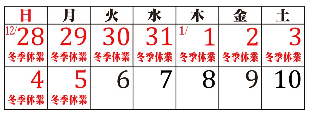 12月31日 冬季休業